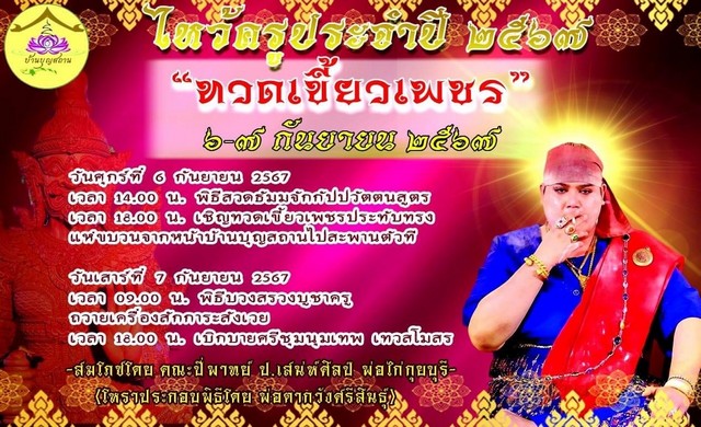 ซึ่งปี 2567 นี้เป็นพิธียิ่งใหญ่กว่าทุกๆปี ซึ่งจะมีขบวนแห่ทวดเขี้ยวเพชรเป็นปีแรก เดินขบวนโปรดลูกๆหลานๆ ลูกศิษยานุศิษย์ผู้มีจิตศรัทธา ซึ่งในพิธีไหว้ครูประจำปี 2567 และมีหน่วยงานข้าราชการจากหลายภาคส่วนมาร่วมงาน รวมถึงผู้หลักผู้ใหญ่ในบ้านเมืองหลายๆท่านมาร่วมงานในครั้งนี้